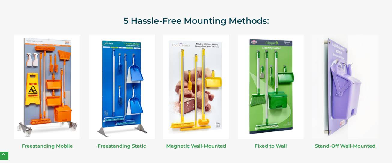 Our most popular option for wall-mounted shadow boards, allowing rapid installation and easy removal for cleaning.