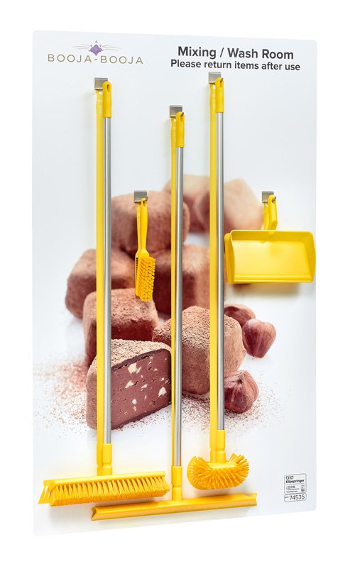 Stainless steel standoffs provide a 25mm clearance between the shadow board and wall – ideal for pipework or cleaning behind.